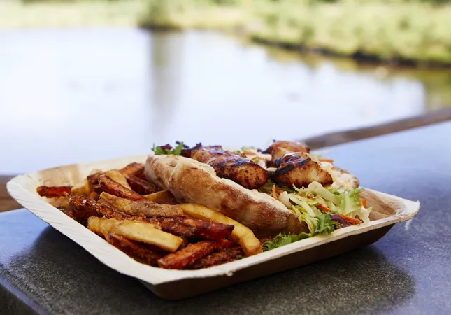 Aftensmad kan tilberedes, hvor I sover, men den kan også nydes i en af parkens spisesteder. I Jacobs Spisehus spiser I dansk mad bl.a. flæskestegssandwich. I Baobab spiser I mad med med strejf af babobasmag. Det er bl.a. steak med kartofler og salat. I Safari Grill får I med klassisk grillmad bl.a. burgere.