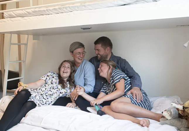 I føler jer hjemme på familieværelserne på GIVSKUD ZOO - HOSTEL. Værelset har eget badeværelse, et større garderobeskab, så det er nemt at holde rydeligt samt lidt møbler til afslapning. Op til fem personer kan sove sammen på værelserne.