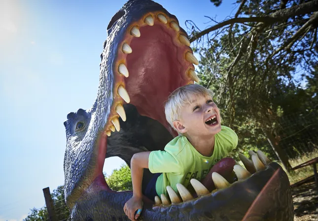 I dinosaurparken i GIVSKUD ZOO står I overfor flere end 50 modeller i naturlig størrelse. Glæd jer til bl.a. at så ansigt til ansigt med T-rex, langhals og alle de andre. Hvis I tør.