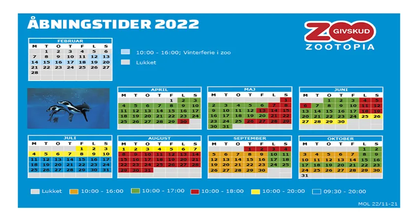 Her kan du se åbningstider for GIVSKUD ZOO - ZOOTOPIA.