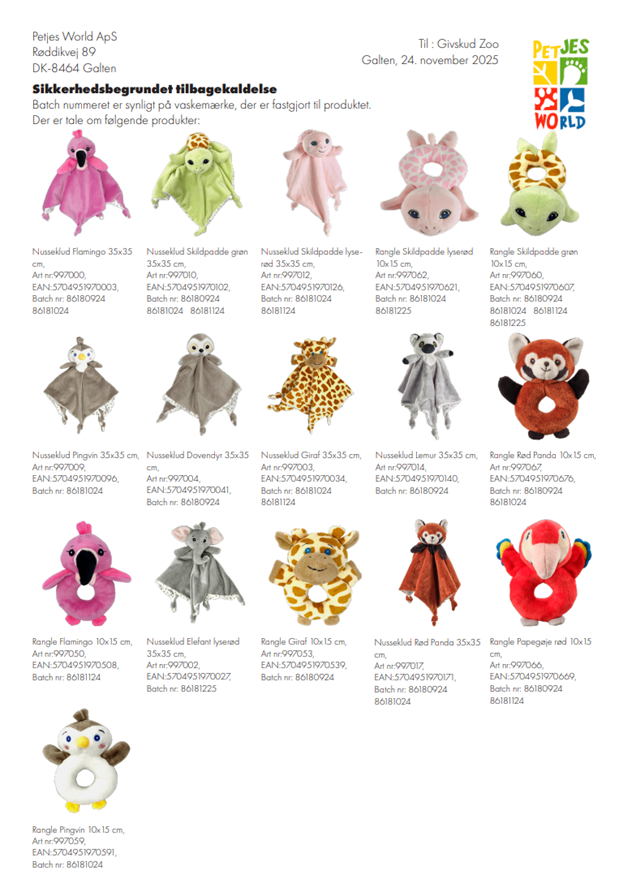 If you have purchased one of the listed products at GIVSKUD ZOO – ZOOTOPIA, we ask that you either dispose of the product or return it to us, after which you will receive a refund.