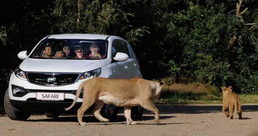 Kontakt en zoomedarbejder, hvis du har problemer med bilen. Brug hornet for at tilkalde hjælp, hvis du kører på safarituren eller i løveområdet – og bliv i bilen!