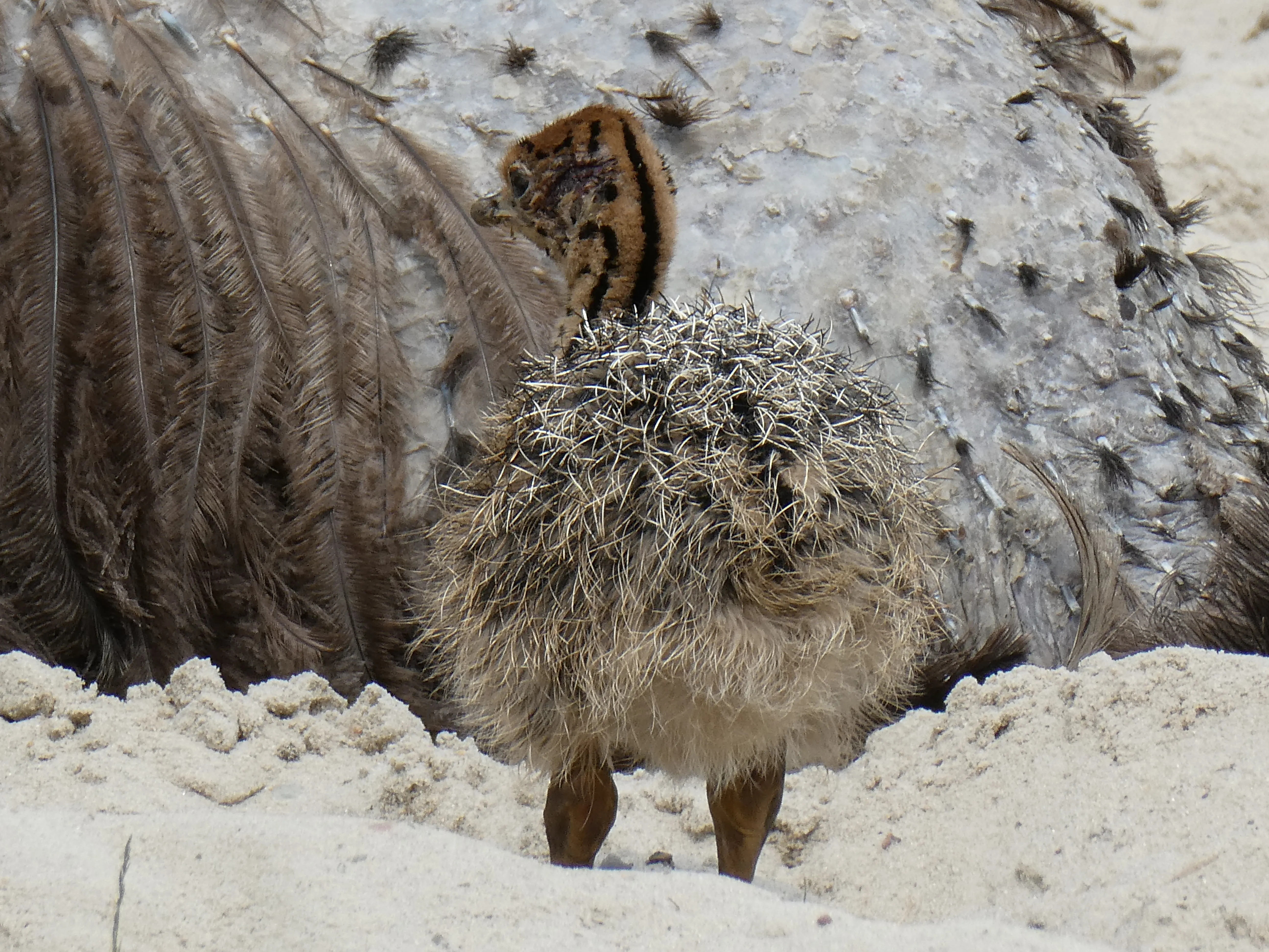 For første gang i en del år har vi fået en strudsekylling i flokken. forældrene er førstegangsforældre og gode til at passe på deres unge.