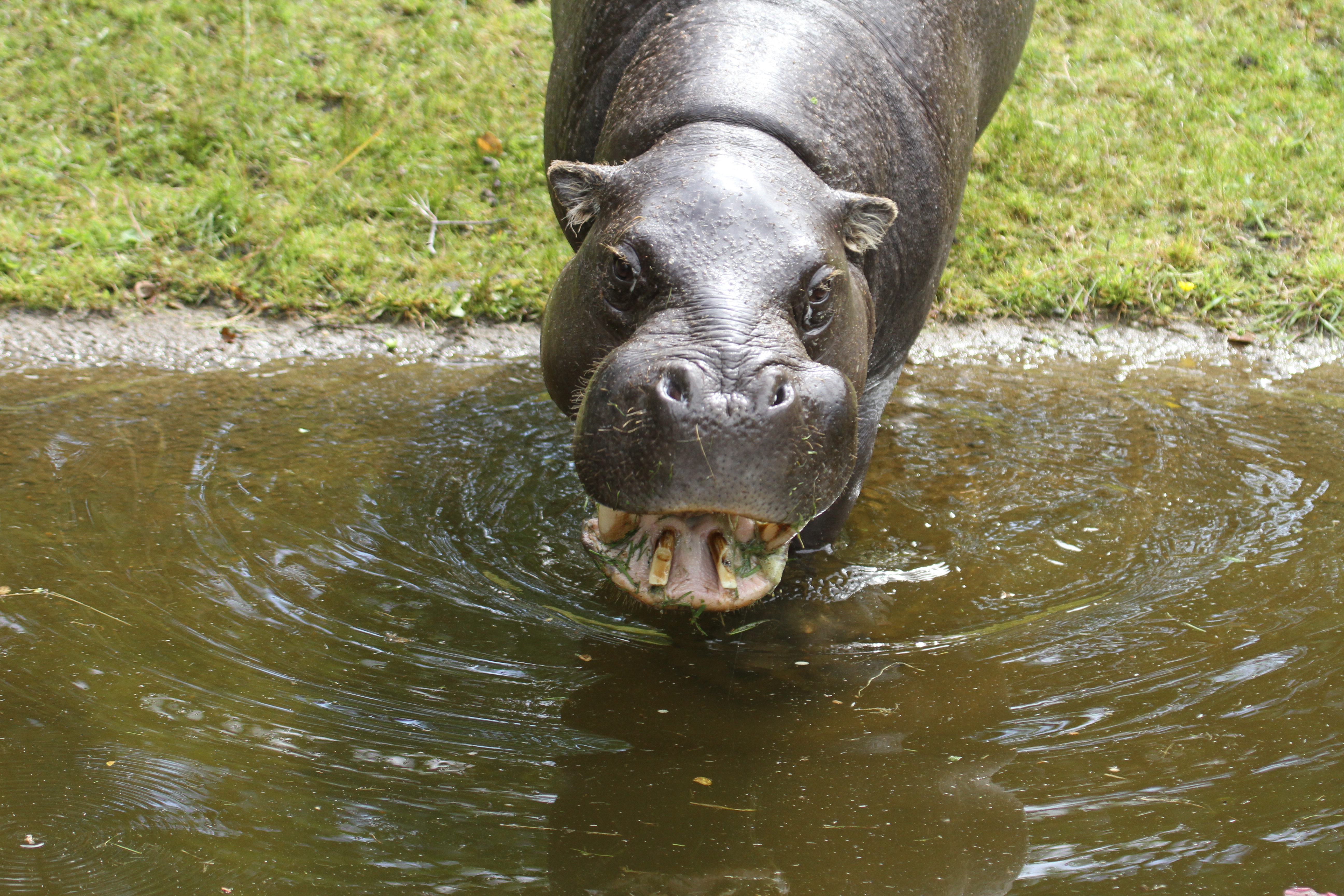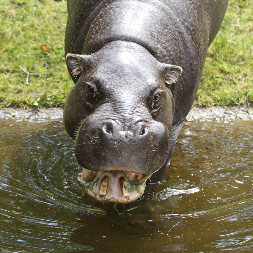 Et særkende for dværgflodhesten er, at den er solitær. Det vil sige, at den normalt foretrækker et liv i ensomhed, hvor hannen og hunnen kun mødes, når hunnen er i brunst og klar til parring. Her hos os er situationen lidt anderledes. Vi har været heldige, at vores to flodheste er så glade for hinanden, at de kan gå sammen hele tiden, også uden for brunstperioder.