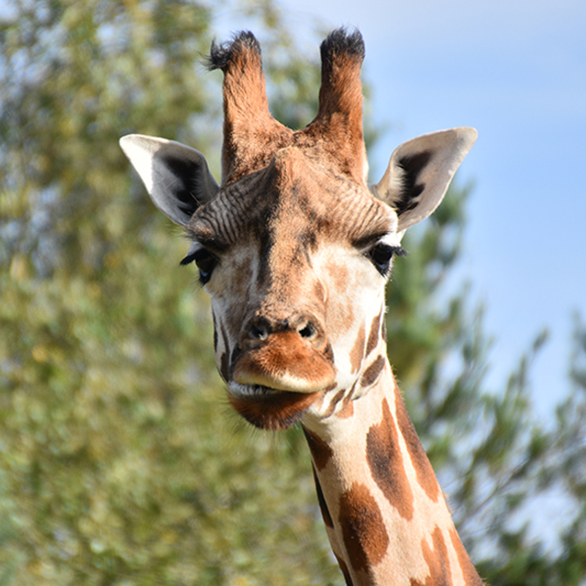 Giraffen er det højeste pattedyr, der findes. Med sine fem+ meters højde er giraffen som skabt til at nå alt det, som de andre dyr på savannen ikke kan nå. Og alt hos giraffen er simpelthen langt. Tungen er en halv meter lang, og man siger, at giraffen kan slikke sig selv i øret. Halsen er også utrolig lang, men den indeholder kun syv halshvirvler. Det samme antal som hos mennesker og næsten alle andre pattedyr. Hos giraffen er halshvirvlerne bare enormt lange. Derudover har giraffen nogle meget lange fødder/hænder. Det, som ligner et knæ, svarer henholdsvis til vores hånd- og fodled. Selvom girafferne ser ens ud, er deres mønstre ligeså forskellig som vores fingeraftryk.