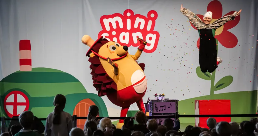 Børnene vil blive trukket ind i Minisjang Universet med de populære sange som "Hjulene på bussen", "Borte-Tit" og "Omvendt dag", der vil skabe genklang i alles hjerter og få børnene til at synge med af fuld hals.