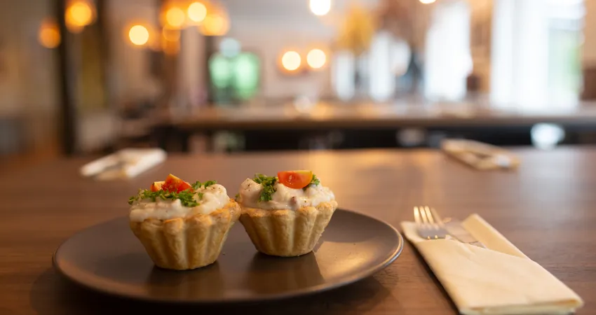 Maden indtages i Jacobs Spisehus med direkte adgang ud til en parkeringsplads, hvor bussen kan holde. I kan derfor køre lige til døren.