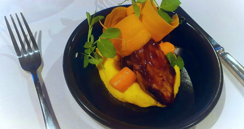 Langtidsstegt kalvefilet Honningbagte rodfrugter