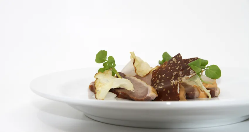 Med årets nytårsmenu er der både noget for dine gæster, der elsker kød - de kan nemlig vælge mellem to forskellige hovedretter med en mør og saftig skaftkotelet eller en klassisk tournedos af oksemørbrad - og for dem, der foretrækker en vegetarisk menu, der forkæler på både det visuelle og på smagen.