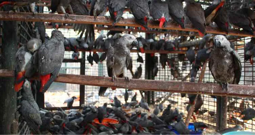 Ifølge centrets egen beretning blev fuglene beslaglagt af militære styrker, da de skulle sendes til nabolandet Nigeria. Fuglene var stykket ned i beskidte trækasser, hvor de nærmest ikke kunne bevæge sig rundt under transporten, som havde varet i dagevis. De manglede både mad og vand, og de var mærkede deraf, da de ankom til Limbe Wildlife Center.