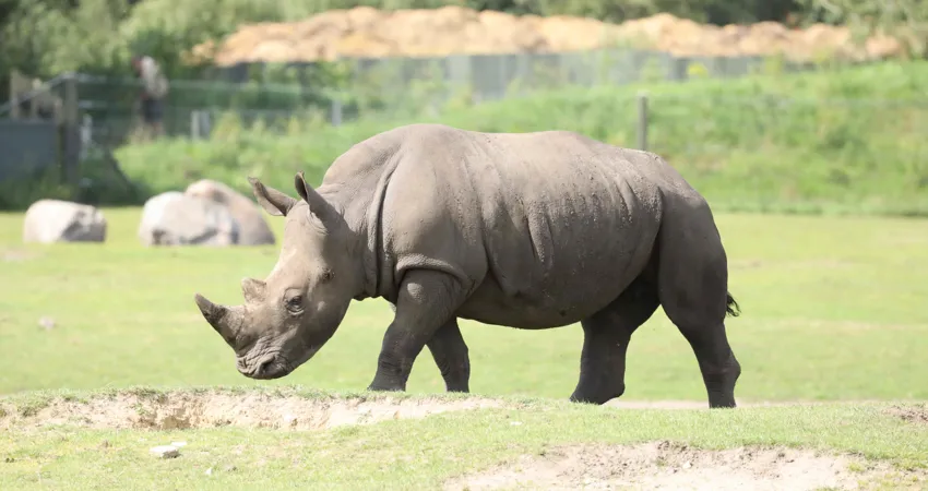 Det nye næsehorn i GIVSKUD ZOO – ZOOTOPIA, Aranka, er nem at få øje på ude på parkens store afrikanske savanne. Hun er kun tre et halvt år, så hun er noget mindre end parkens andre hunner.