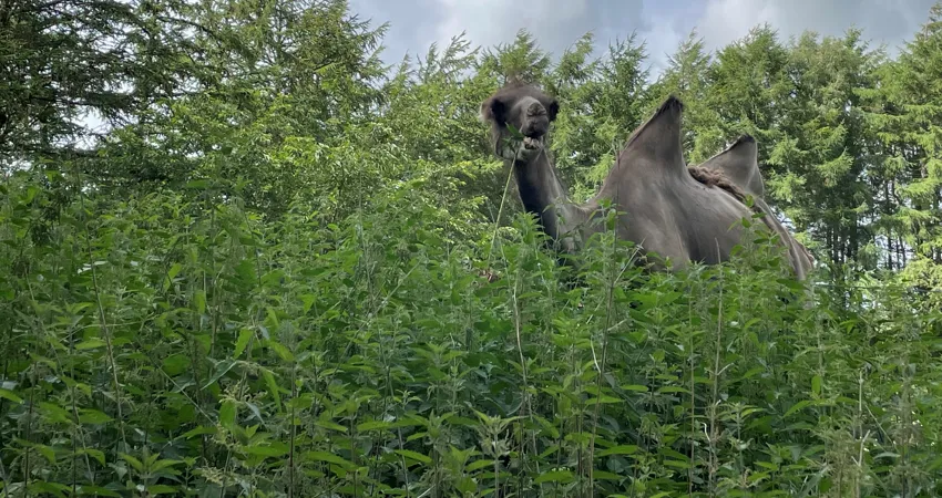 Af og til kan man se nogle af GIVSKUD ZOO – ZOOTOPIAs dyr gå rundt i brændenælder i deres store anlæg.