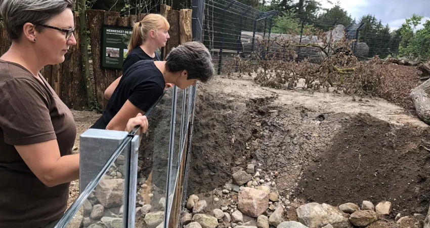 - Vi har fire bjørne, hvoraf to brødre går sammen og har vænnet sig til den del af anlægget, der først blev færdigt. Nu har vi så endnu en han og en hun, som både skal lære områderne og hinanden at kende. Så vi lukker bjørnene ud, når de er klar og lader dem undersøge omgivelserne i ro og mag. Og så observerer vi dem løbende og vurderer, hvordan det fungerer bedst med placering, forklarer dyrlægen.