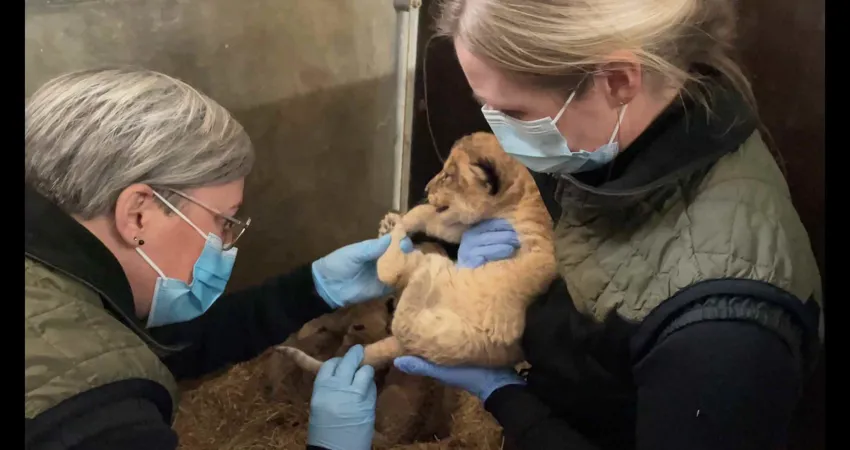 - Ved nogle arter som savannebøflen tilser vi kalvene indenfor de første et til to døgn efter fødslen. Ellers får vi ikke en chance for det, fordi de hurtigt er på benene og følger med flokken. Ved løveungerne kan der godt gå nogle dage eller en uges tid, da mor lige skal være tryg nok til at forlade ungerne kortvarigt for at spise. Så griber vi chancen og tilser ungerne. Og andre arter igen som vores dværgaraer kan blive hos mor i længere tid i fred og ro, inden vi tilser dem.