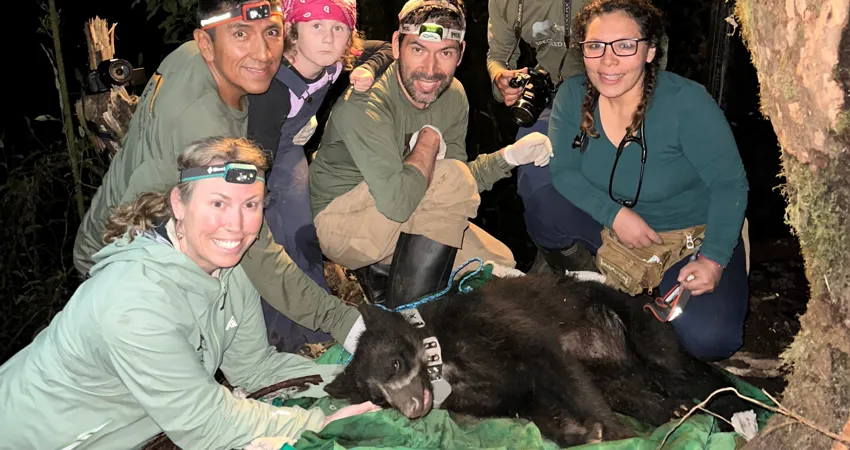 Nu er det lykkedes at indfange to bjørne, sætte GPS-halsbånd på og slippe bjørnene ud i naturen igen. Det giver forskerne en helt unik mulighed for at lære mere om brillebjørnes adfærd og bevægelsesmønstre i de tætte tågeskove og på de stejle skråninger i Andesbjergene.