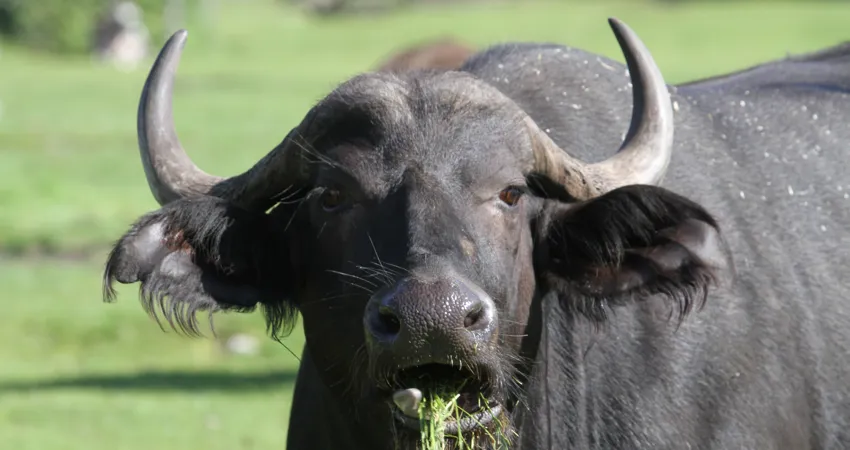 Normalt har kvægslægten horn, som sidder fast i kraniet. Det gælder for eksempel bisonokser som dem i GIVSKUD ZOO – ZOOTOPIA.