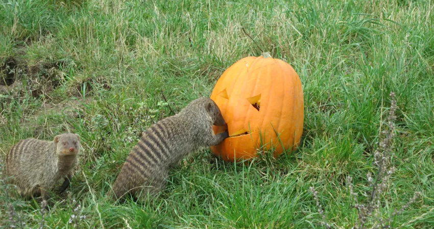 - Året igennem arbejder dyrepasserne meget med berigelse, og de sørger for forskellige aktiviteter til dyrene. Det kan være sæbebobler eller nødder i vand hos gorillaerne, kasser med godter hos sulawesimakkkerne eller en bladbunke med melorme til zebramangusterne. Det kan dyrene bruge god tid på at arbejde med, og så stimulerer det deres naturlige sanser, så berigelse er et meget vigtigt værktøj i parken. Og i uge 42 er det så græskar vi bruger for at holde fast i temaet.