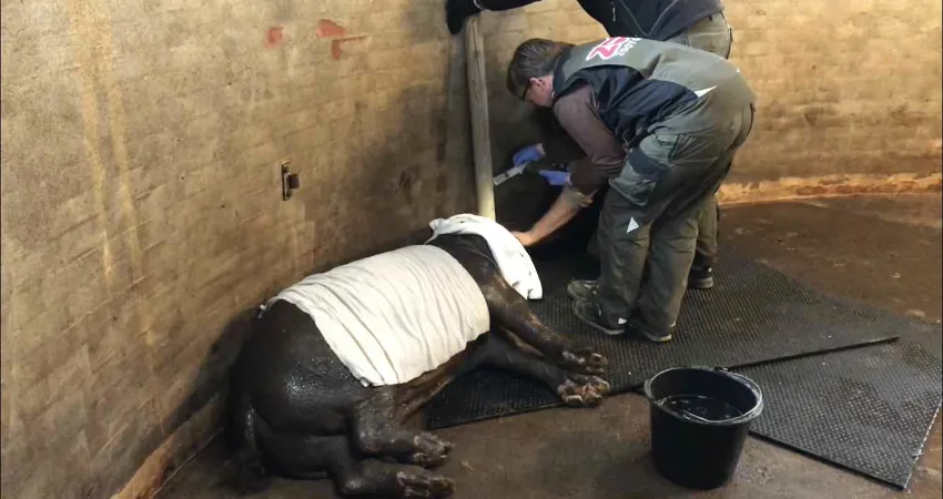 - Det er utrolig vigtigt, at vi arbejder hurtigt, så han ikke skal være bedøvet særlig længe, for dværgflodheste er svære at bedøve på en sikker måde. De kan hurtigt blive alt for varme og få problemer med iltmætningen, da de kan finde på at holde vejret, som når de dykker. Og vi er rigtig godt tilfredse med forløbet her, for der gik kun 24 minutter, fra jeg sendte bedøvelsespilen afsted, til han var vågen og på benene igen, fortæller Ditte-Mari Sandgreen.