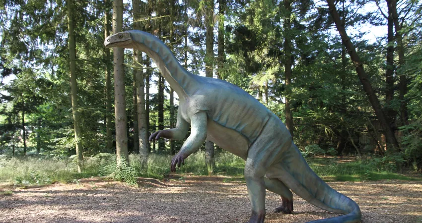 - Har i parken har vi kun en enkelt model i vores dinosaurpark fra den omtalte periode, triastiden. Den kaldes Platerosaurus og er en af de tidligste dinosaurarter, man kender til. Og faktisk mener man, at Pleteosaurus og Camelotia var nært beslægtet. De var også begge i stand til at gå på både to og fire ben, hvorfor vi må formode, at Plateosaurus har lavet fodspor, der mindede meget om, hvad man netop har fundet i Wales.