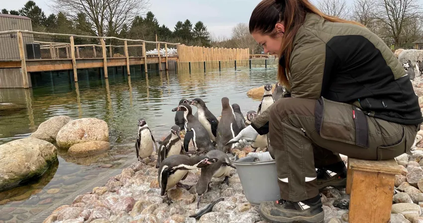 Det er dog ifølge dyrepasseren vigtigt, at selve fodringen foregår på land, og at de ikke bare kaster fisk ud i pingvinernes store bassin.