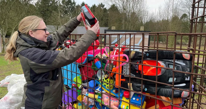 Det er dog ikke plastik, der er produceret til formålet. Det er tværtimod affaldsplast, som parken har hentet ind for netop at formidle om problemerne, når vi mennesker overforbruger plastik og bare smider det i naturen.