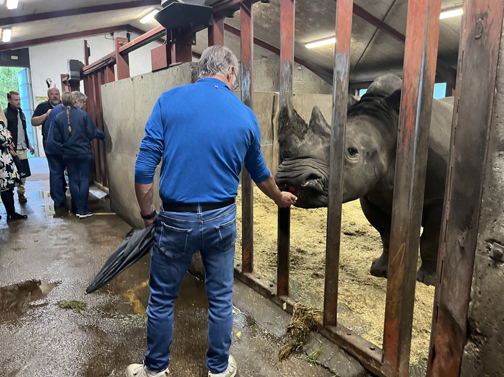 I næsehornstalden ikke langt fra derfra ventede de seks hvide næsehorn også på sponsorbesøg. Sponsorerne fik mulighed for at fodre næsehornene med æbler samt at klø de store dyr bag ørene.
