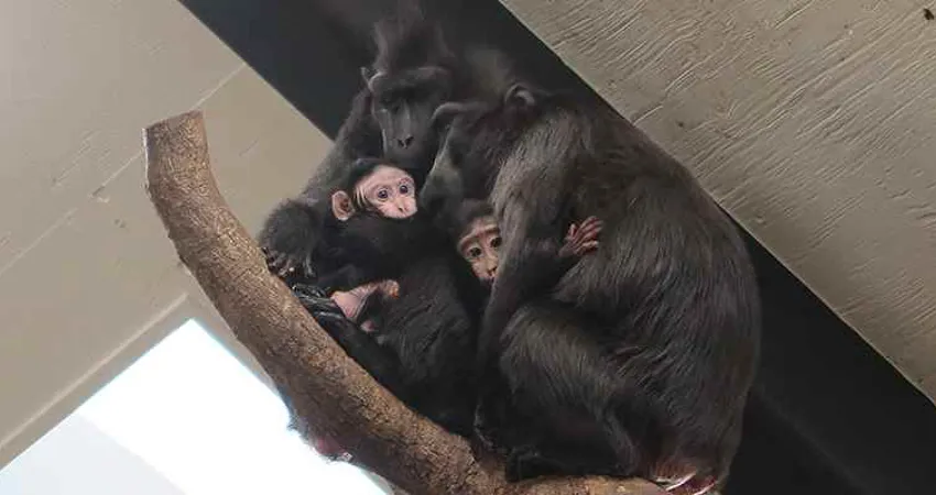 Det er cirka to måneder siden, at sulawesimakakken Sami fik en lille unge. I lang tid kunne dyrenes faste dyrepasser Jette Nørgaard ikke få et rigtig godt kig mellem benene på den lille, der kunne afsløre, om det var en han eller en hun, der er føjet til flokken.