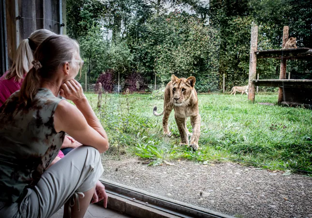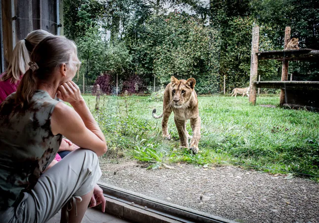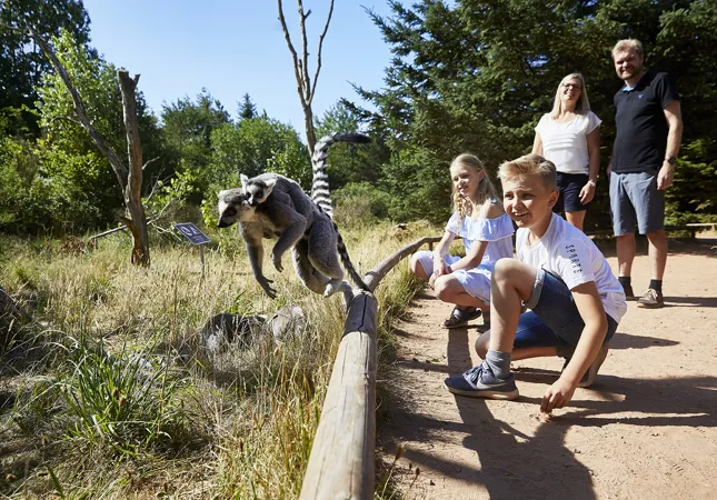 I anlæggene hos lemurer, berberaber, geder og pingviner går I helt inde i deres anlæg. Her må hunde desværre ikke medtages, så de skal passe ved løveanlæggene under jeres besøg her.