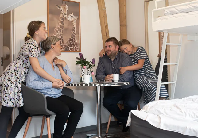 GIVSKUD ZOO - HOSTEL er GIVSKUD ZOOs eneste overnatning indendørs. Her overnatter I over for zoo, men kan stadig høre de daglige ulvehyl og løvebrøl. I sover på hyggelige familieværelser med op til fem sovepladser, alle med eget bad. Der er 26 familieværelser. Hostel har flere fælles hyggerum og spil, så håneretten kan finde sin ejermand. Der er gode udendørs omgivelser, der også indbyder til leg og bevægelse, og I kan tilkøbe en varieret og lækker morgenbuffet. Der er fælles køkken og grill, hvis I selv ønsker at kreere aftensmad og frokost.