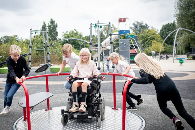 På legepladsen på P3 i GIVSKUD ZOO findes 4 store legeredskaber, så alle kan gynge - hoppe i trampolin og nyde ture karruseller.