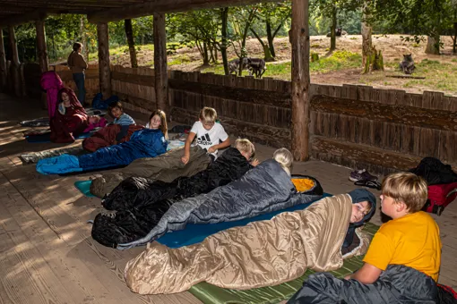 Få en helt særlig lejrskole. Mærk ulvene pusle om jer en nat, mens I sover i deres anlæg, og hold resten af lejrskole på hostel. I vågner op til ulvehyl alle dage. I ulveanlægget bliver I tætte naboer med ulveflokken. I sover i egen sovepose på den overdækkede veranda eller i anlæggets bjælkehytte. Aftensmad og morgenmad kan I lave over bål eller en gasgril. Tandbørstning foregår i et skur. Bemærk: gruppen skal bestå af 20 min. personer for at en ulvenat kan bookes.