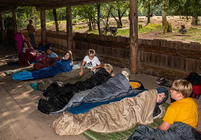 En lejrskole i ulvenes anlæg i GIVSKUD ZOO er en meget stor oplevelse. Her sover I helt primitivt på gulvet på verandaen eller i en bjælkehytte. Ulvene lever omkring jer, så I kan både høre dem pusle om natten og se dem i øjnene døgnet rundt. Der medfølger et gratis undervisningsmodul om ulve pr. ophold. Flere undervisningsmoduler kan købes til.