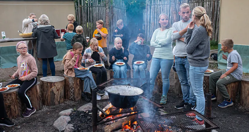 Det er også muligt at bestille både aftensmad, bål-snack og morgenmad fra Jacobs Spisehus. Vi sørger for maden bliver leveret til jer i Bomaen, det eneste, I skal, er, at varme maden.