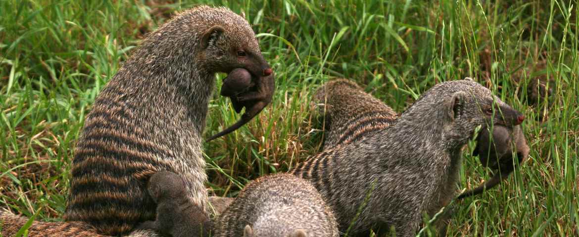 Zebramangustere er små dyr, der har svært ved at forsvare sig, når de er alene. Derfor holder familien altid sammen, og alle hjælper med at få et enkelt kuld unger på benene. Dværgflodhestene derimod lever alene og kommer kun sammen i parringstiden, hvorefter der går to år, før hannen og hunnen ses igen. Hos berberaberne har ungerne en anden farve end de voksne, så de ældste aber ved, hvem af de skrigende unger, der egentlig har brug for omsorg.