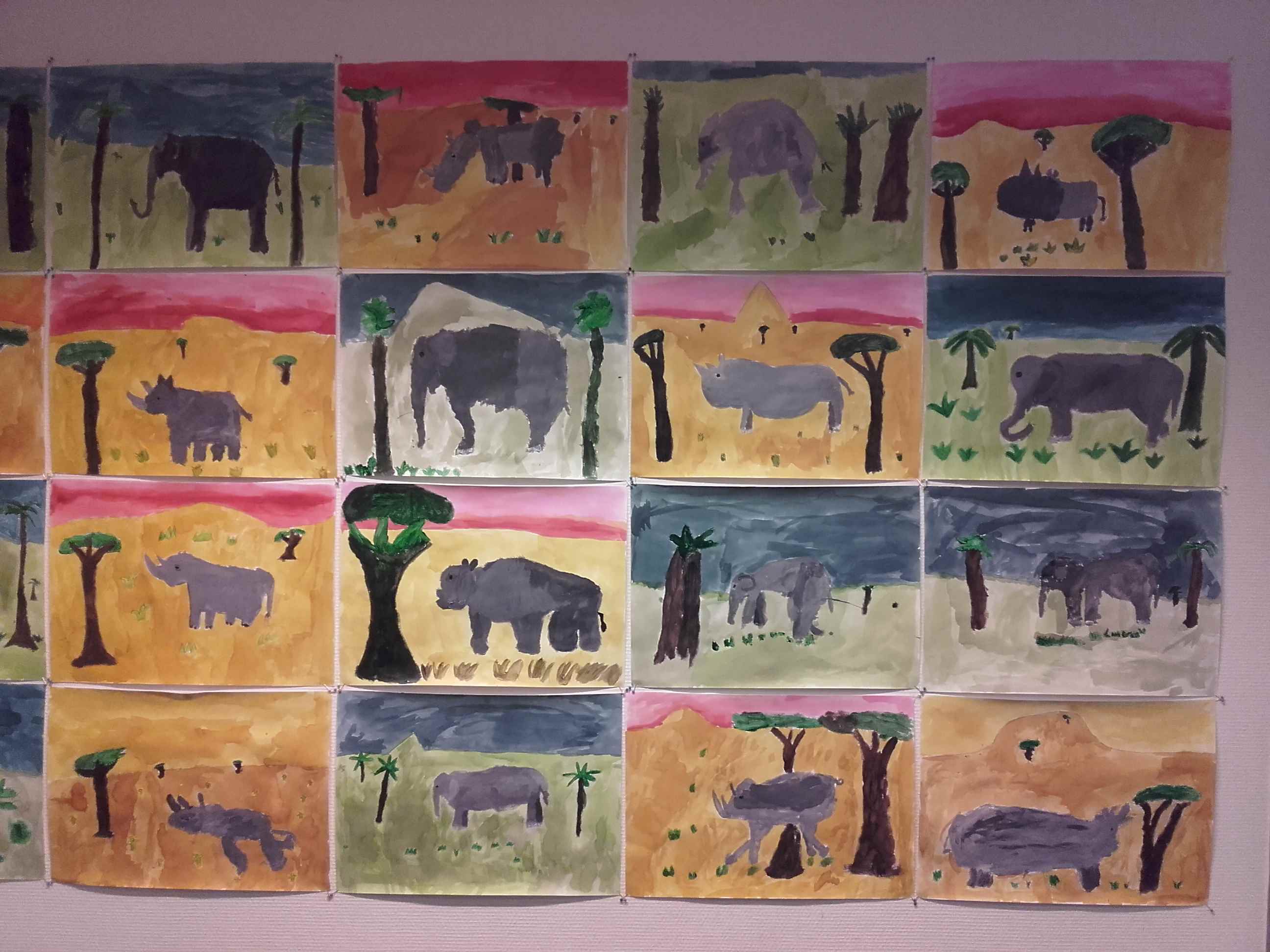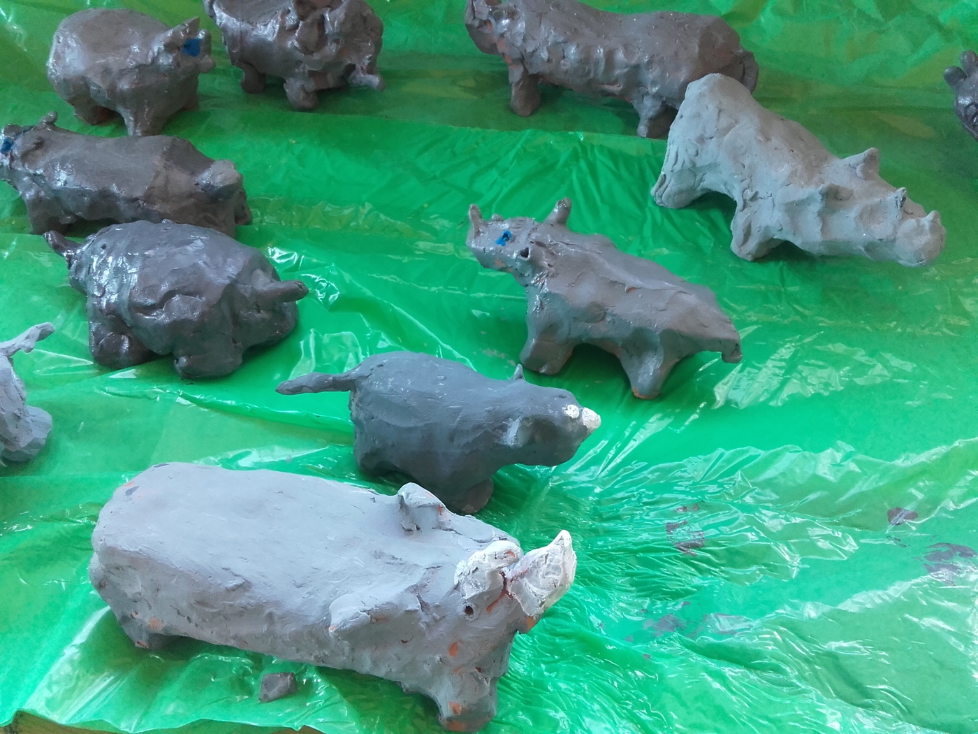 Efter at have oplevet de levende dyr kan I arbejde todimensionelt med f.eks. maleri eller tredimensionelt med f.eks. ler. Næsehorn har kraftige ben og store fødder, som gør det muligt at lave lerfigurer, som kan stå.